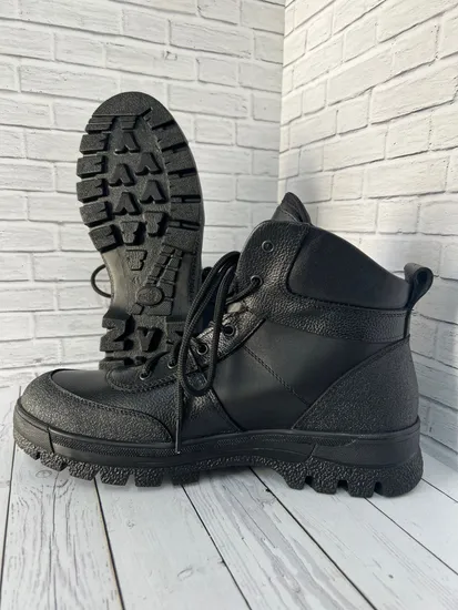 Ботинки Терек– Универсальная армейская обувь для любителей активного отдыха, экстремального туризма, охоты и продолжительных путешествий по дикой природе. Благодаря стильному черному цвету и современному дизайну эти армейские ботинки оптимально подойдут для военных и гражданских. Полиуретановая подошва обеспечивает хорошее сцепление с любым рельефом, а двойная стелька с супинатором отлично амортизирует при ходьбе. Чтобы защитить стопу от ушибов, в заднике и подноске фабрика обуви добавила термопластичные вставки.